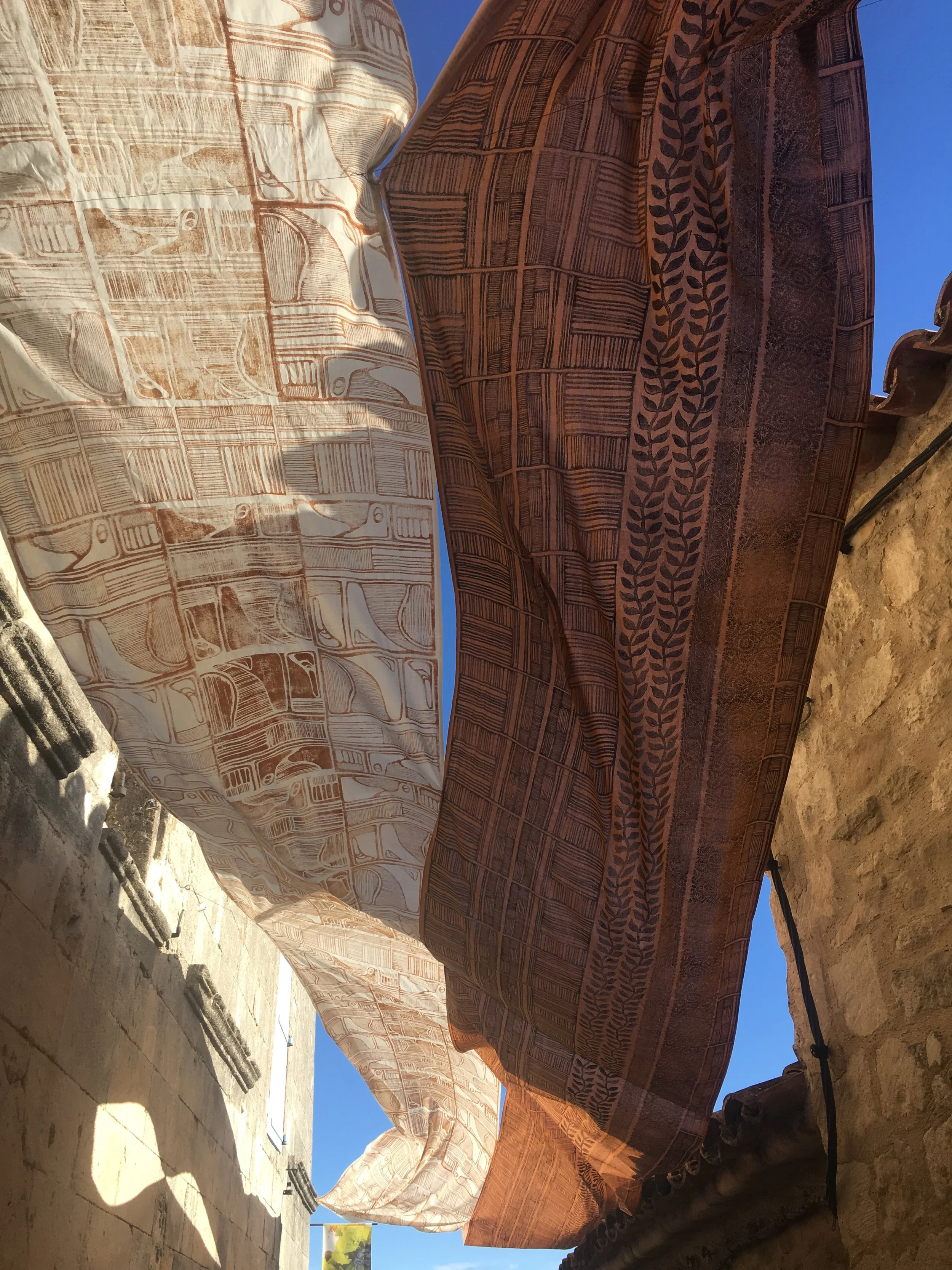 In the summer of 2017, I traveled to Lacoste, France as an Artist-in-Residence through the Savannah College of Art and Design (SCAD) Alumni Ambassadorship program. Located in the Provence-Alpes-Côte d'Azur region, Lacoste has a long history with block printed textiles, particularly a type called “Les Indiennes.” Originating in India, these textiles were imported in the 17th century and became wildly popular, which prompted local manufacturers to pick up the technique. The fabrics became readily available in markets (and still are), often seen in the form of household furnishings. With time and the arrival of industrialization, the traditional, laborious process was inevitably replaced by more mechanized production. My goal was to reinterpret and reproduce these fabrics using technology to facilitate the process, while still capturing the singularity and tactility associated with handwork and maintaining the artisanal nature of the originals.